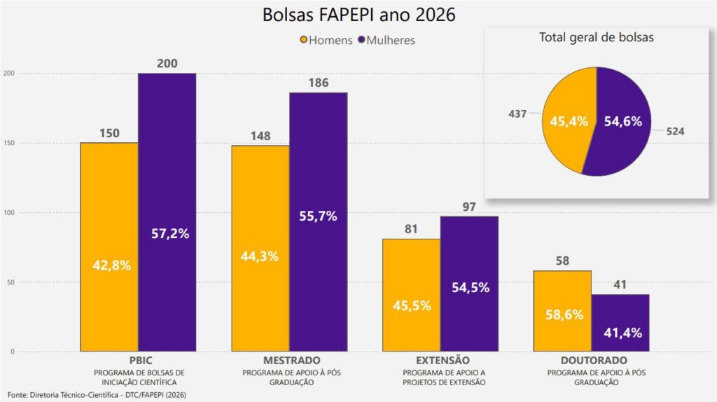 De forma geral, os números apontam para um movimento consistente de fortalecimento da presença feminina na ciência piauiense. Ao liderarem a maioria das bolsas concedidas pela Fapepi, as pesquisadoras ampliam sua participação na produção de conhecimento, na inovação e no desenvolvimento do estado.